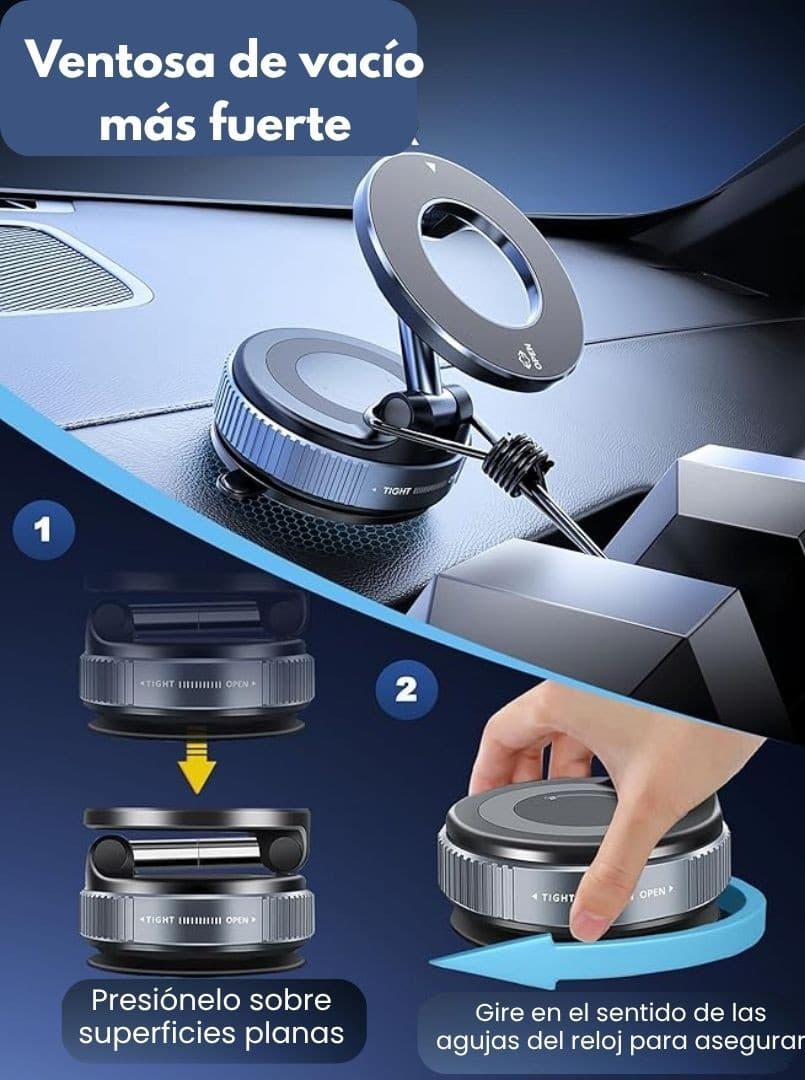 Nuestro soporte cuenta con imán ultrapotente, rotación 360°, compatibilidad universal, sin herramientas, ni ajustes complicados, lo instalás en segundos.
